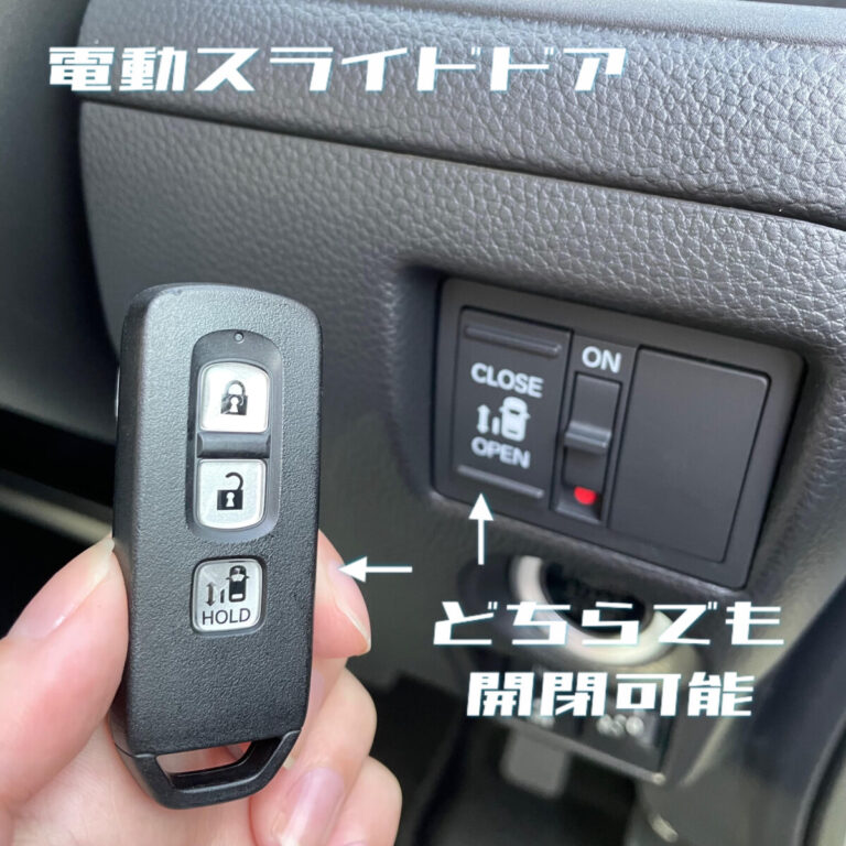スライドドアはハンドル右下のスイッチや、鍵でも開け閉めすることが可能です。